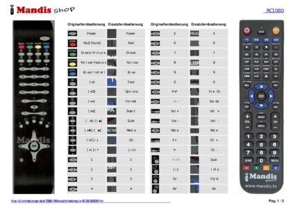 Ein Dokument ist enthalten, um die Verwendung der neuen Fernbedienung zu erleichtern, indem es die Tastenbelegung zeigt.