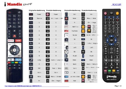 Ein Dokument ist enthalten, um die Verwendung der neuen Fernbedienung zu erleichtern, indem es die Tastenbelegung zeigt.