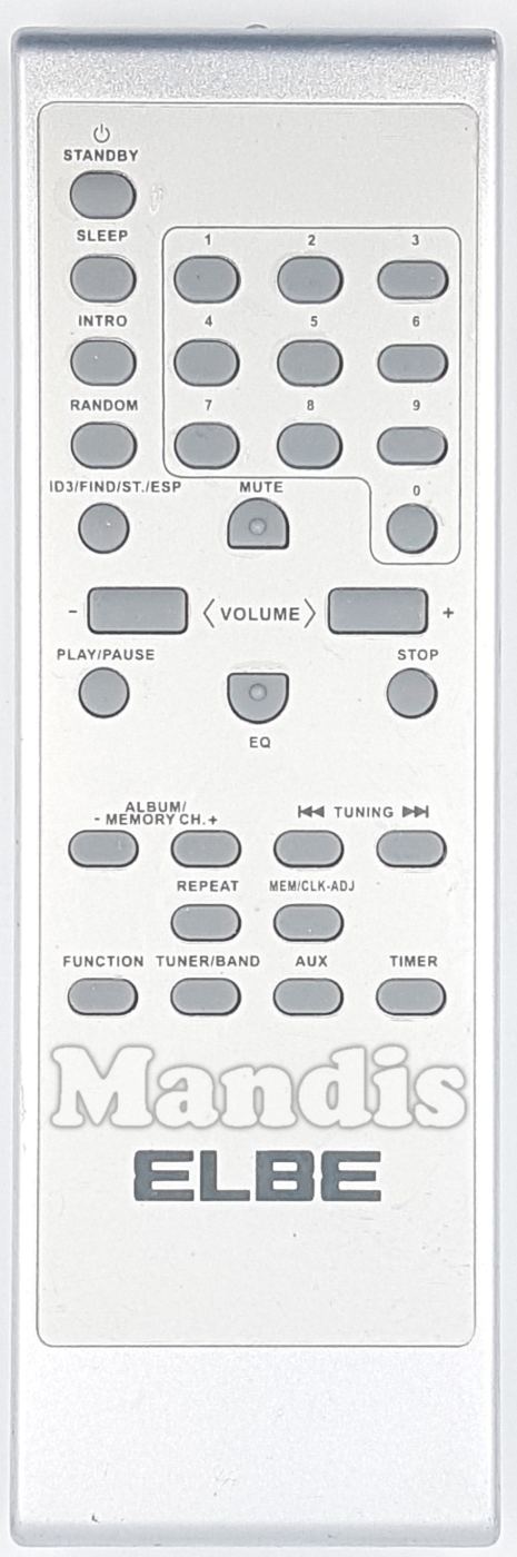 Fernbedienung Original ELB001 zur Steuerung der Hi-Fi-Anlage der Marke Elbe. Es handelt sich um eine Originalfernbedienung.