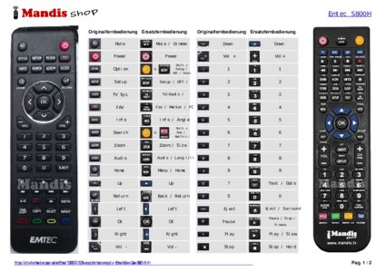 Ein Dokument ist enthalten, um die Verwendung der neuen Fernbedienung zu erleichtern, indem es die Tastenbelegung zeigt.