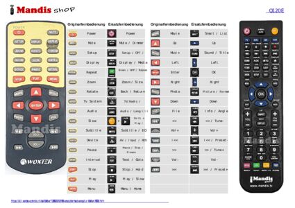 Ein Dokument ist enthalten, um die Verwendung der neuen Fernbedienung zu erleichtern, indem es die Tastenbelegung zeigt.