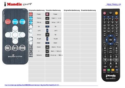 Ein Dokument ist enthalten, um die Verwendung der neuen Fernbedienung zu erleichtern, indem es die Tastenbelegung zeigt.