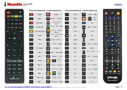 Diese Fernbedienung ersetzt Ihre ENE005 in vollem Umfang und bietet alle Funktionen des Originals.