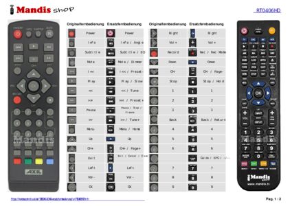 Ein Dokument ist enthalten, um die Verwendung der neuen Fernbedienung zu erleichtern, indem es die Tastenbelegung zeigt.