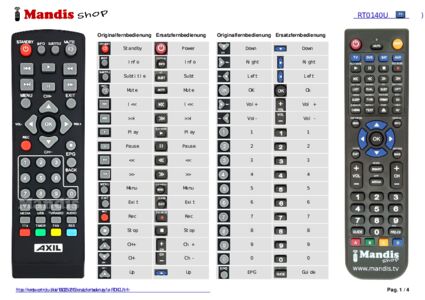 Ein Dokument ist enthalten, um die Verwendung der neuen Fernbedienung zu erleichtern, indem es die Tastenbelegung zeigt.
