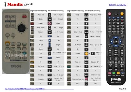 Home > Marken > Fernbedienungen Epson > Fernbedienung für Epson 1306200