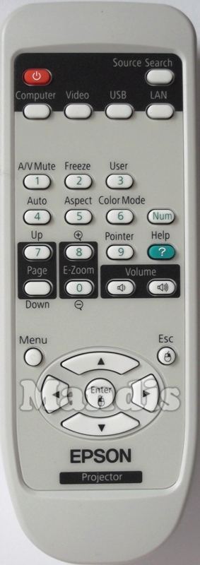 Power, Source Search, Computer, Video, USB, LAN, 1 / A/V Mute, 2 / Freeze, 3 / User, 4 / Auto, 5 / Aspect, 6 / Color Mode, 7 / Page Up, 8 / E-Zoom +, 9 / Pointer, Page Down, 0 / E-Zoom -, Num, Help, Volume -, Volume +, Menu, Esc, Up, Down, Right, Left, Enter