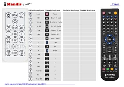 Diese Fernbedienung ersetzt Ihre EQU001 in vollem Umfang und bietet alle Funktionen des Originals.