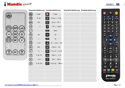 Ein Dokument ist enthalten, um die Verwendung der neuen Fernbedienung zu erleichtern, indem es die Tastenbelegung zeigt.