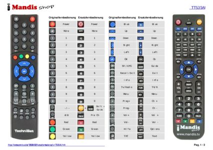 Ein Dokument ist enthalten, um die Verwendung der neuen Fernbedienung zu erleichtern, indem es die Tastenbelegung zeigt.