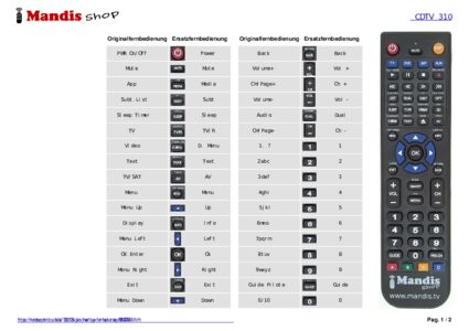 Ein Dokument ist enthalten, um die Verwendung der neuen Fernbedienung zu erleichtern, indem es die Tastenbelegung zeigt.