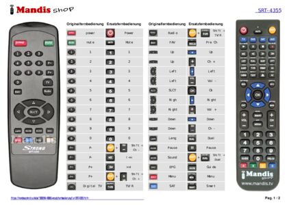 Ein Dokument ist enthalten, um die Verwendung der neuen Fernbedienung zu erleichtern, indem es die Tastenbelegung zeigt.