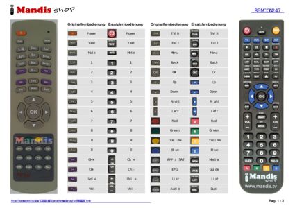 Ein Dokument ist enthalten, um die Verwendung der neuen Fernbedienung zu erleichtern, indem es die Tastenbelegung zeigt.
