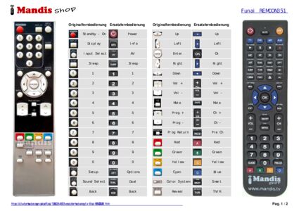 Ein Dokument ist enthalten, um die Verwendung der neuen Fernbedienung zu erleichtern, indem es die Tastenbelegung zeigt.