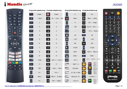 Ein Dokument ist enthalten, um die Verwendung der neuen Fernbedienung zu erleichtern, indem es die Tastenbelegung zeigt.