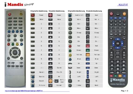 Ein Dokument ist enthalten, um die Verwendung der neuen Fernbedienung zu erleichtern, indem es die Tastenbelegung zeigt.