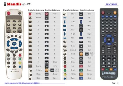 Ein Dokument ist enthalten, um die Verwendung der neuen Fernbedienung zu erleichtern, indem es die Tastenbelegung zeigt.