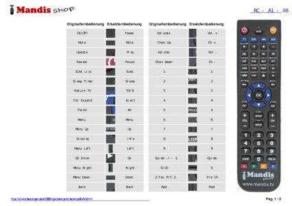 Diese Fernbedienung ersetzt Ihre RC-A1-08 in vollem Umfang und bietet alle Funktionen des Originals.