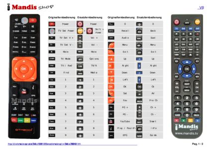 Ein Dokument ist enthalten, um die Verwendung der neuen Fernbedienung zu erleichtern, indem es die Tastenbelegung zeigt.
