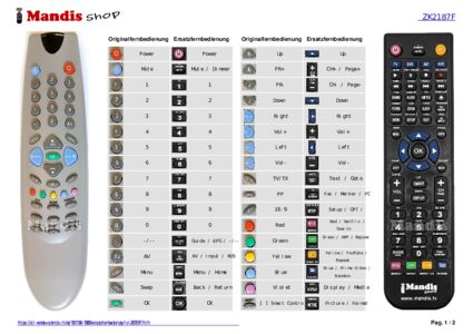 Ein Dokument ist enthalten, um die Verwendung der neuen Fernbedienung zu erleichtern, indem es die Tastenbelegung zeigt.