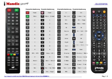 Ein Dokument ist enthalten, um die Verwendung der neuen Fernbedienung zu erleichtern, indem es die Tastenbelegung zeigt.