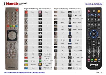 Ein Dokument ist enthalten, um die Verwendung der neuen Fernbedienung zu erleichtern, indem es die Tastenbelegung zeigt.