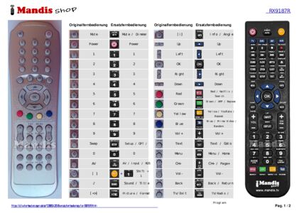 Diese Fernbedienung ersetzt Ihre RX9187R in vollem Umfang und bietet alle Funktionen des Originals.