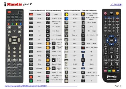 Ein Dokument ist enthalten, um die Verwendung der neuen Fernbedienung zu erleichtern, indem es die Tastenbelegung zeigt.