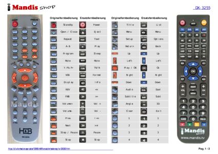 Ein Dokument ist enthalten, um die Verwendung der neuen Fernbedienung zu erleichtern, indem es die Tastenbelegung zeigt.