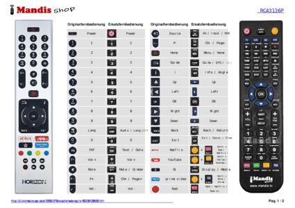 Diese Fernbedienung ersetzt Ihre RC43136P in vollem Umfang und bietet alle Funktionen des Originals.