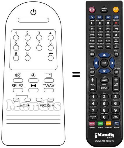 Fernbedienung, die das Original und die Gesamtheit seiner Funktionen, vollständig ersetzt.
