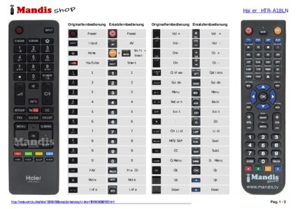 Ein Dokument ist enthalten, um die Verwendung der neuen Fernbedienung zu erleichtern, indem es die Tastenbelegung zeigt.