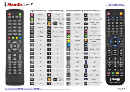 Diese Fernbedienung ersetzt Ihre TBS43FHDPR001 in vollem Umfang und bietet alle Funktionen des Originals.