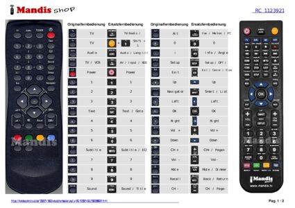 Diese Fernbedienung ersetzt Ihre RC 1123921 / 00 (213922886081) in vollem Umfang und bietet alle Funktionen des Originals.