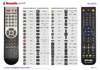 Diese Fernbedienung ersetzt Ihre EN21647S in vollem Umfang und bietet alle Funktionen des Originals.