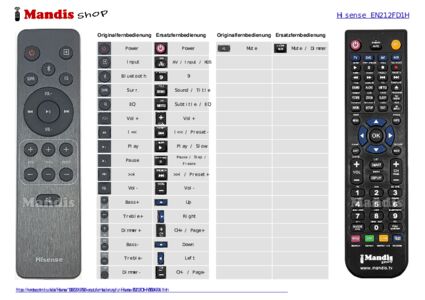 Ein Dokument ist enthalten, um die Verwendung der neuen Fernbedienung zu erleichtern, indem es die Tastenbelegung zeigt.