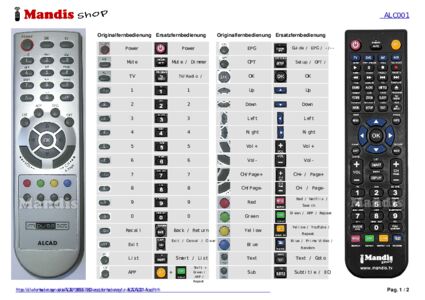 Ein Dokument ist enthalten, um die Verwendung der neuen Fernbedienung zu erleichtern, indem es die Tastenbelegung zeigt.