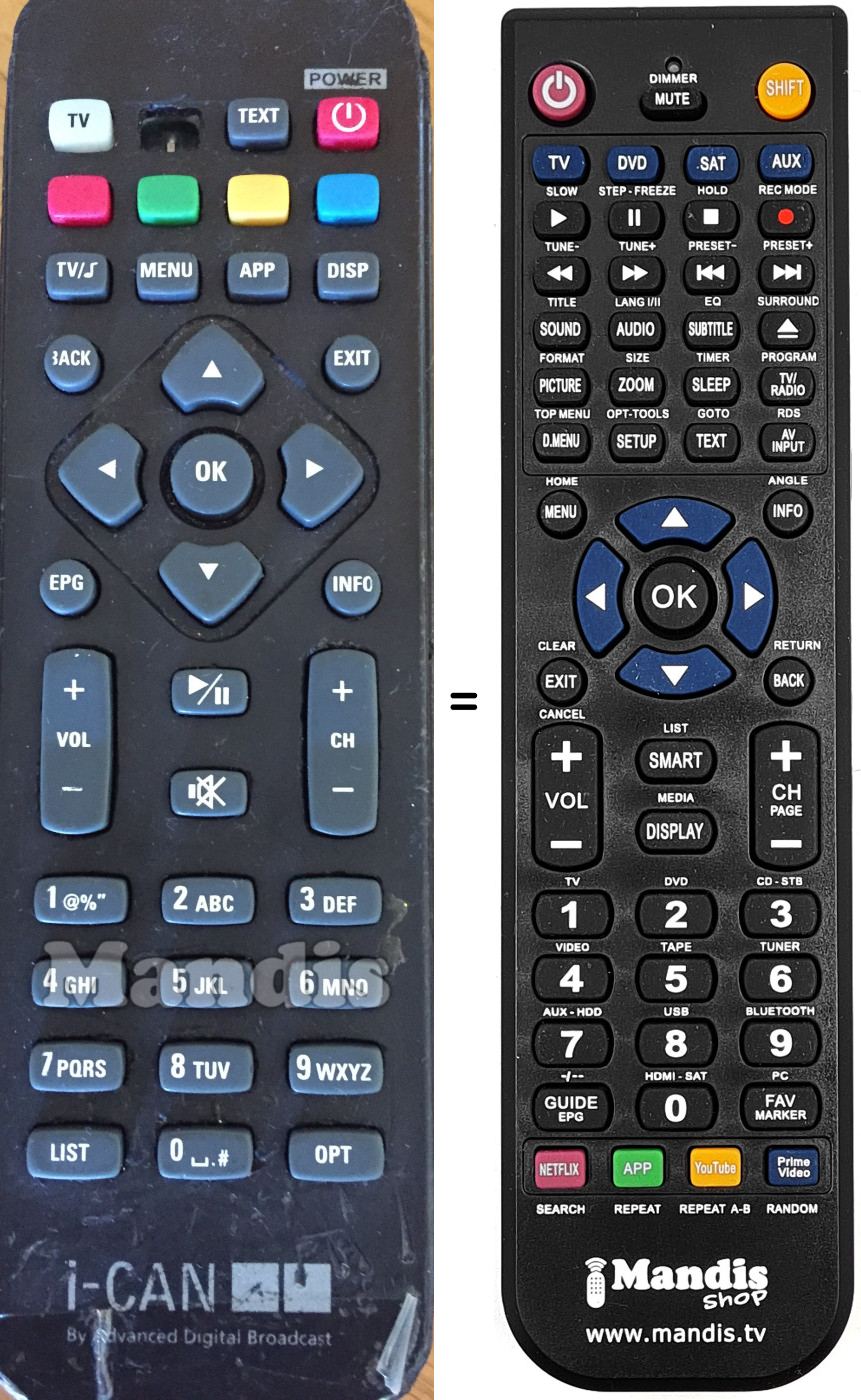 Die Fernbedienung ersetzt das Original ICAN1110SV-STORM (ICAN1110SVSTORM) in der Gesamtheit seiner Funktionen.
