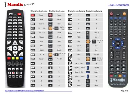 Ein Dokument ist enthalten, um die Verwendung der neuen Fernbedienung zu erleichtern, indem es die Tastenbelegung zeigt.
