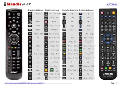 Ein Dokument ist enthalten, um die Verwendung der neuen Fernbedienung zu erleichtern, indem es die Tastenbelegung zeigt.