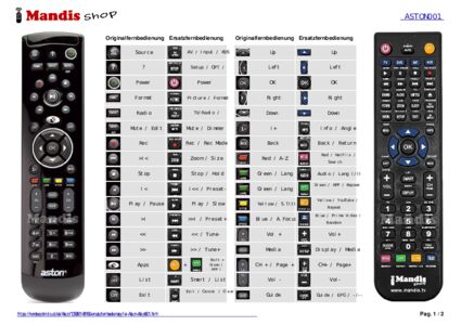 Home > Marken > Fernbedienungen IDHD > Fernbedienung für IDHD Aston001 > Interaktive Tastenbelegung IDHD Aston001