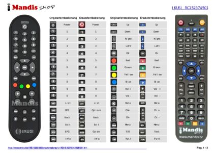 Ein Dokument ist enthalten, um die Verwendung der neuen Fernbedienung zu erleichtern, indem es die Tastenbelegung zeigt.
