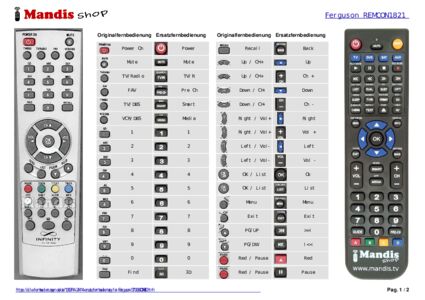 Ein Dokument ist enthalten, um die Verwendung der neuen Fernbedienung zu erleichtern, indem es die Tastenbelegung zeigt.