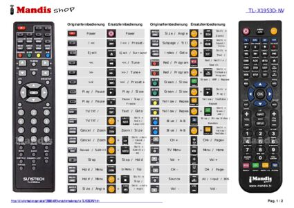 Ein Dokument ist enthalten, um die Verwendung der neuen Fernbedienung zu erleichtern, indem es die Tastenbelegung zeigt.