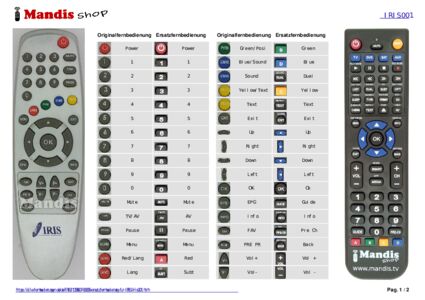Diese Fernbedienung ersetzt Ihre Iris001 in vollem Umfang und bietet alle Funktionen des Originals.
