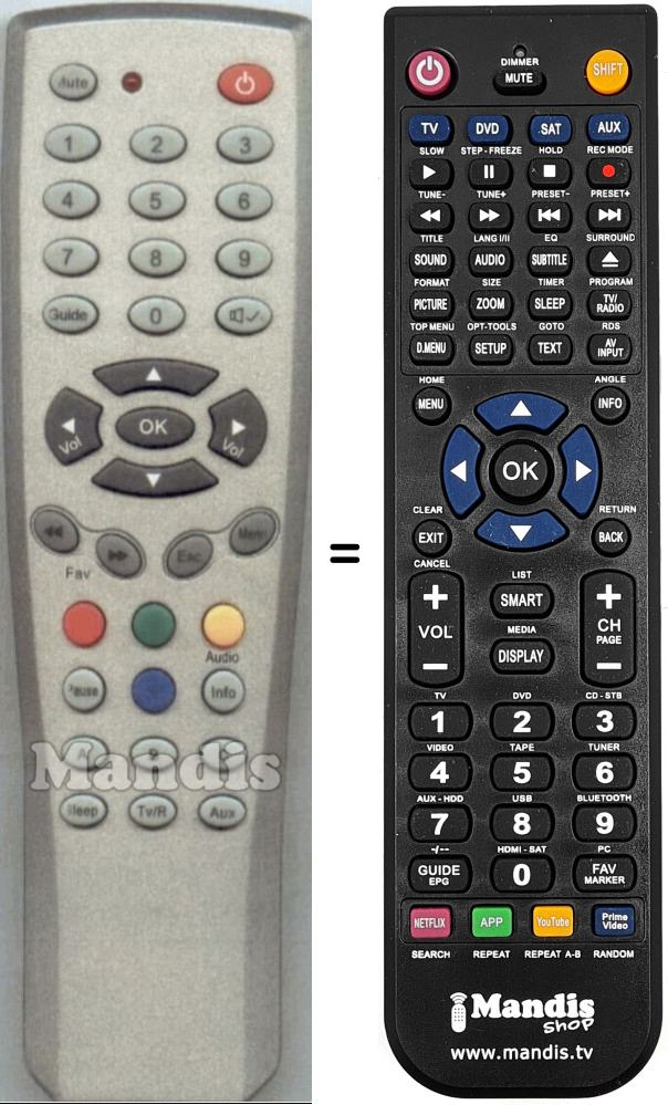 Es handelt sich jedoch nicht um eine Universalfernbedienung sondern um eine Fernbedienung die das Original ersetzt.