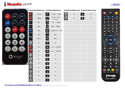 Diese Fernbedienung ersetzt Ihre Ingo001 in vollem Umfang und bietet alle Funktionen des Originals.