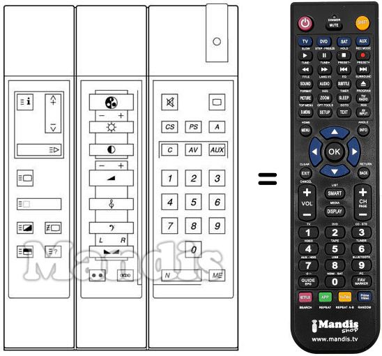 Fernbedienung, die das Original und die Gesamtheit seiner Funktionen, vollständig ersetzt. Es handelt sich jedoch nicht um eine Universalfernbedienung sondern um eine Fernbedienung die das Original ersetzt. Sie erhalten eine nach Einlegen der Batterien sofort einsatzbereite Fernbedienung. Jegliches Programmieren entfällt. Wir geben umfassende Garantie dafür, dass diese Fernbedienung alle Funktionen der Originalfernbedienung erfüllt.
