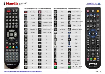 Ein Dokument ist enthalten, um die Verwendung der neuen Fernbedienung zu erleichtern, indem es die Tastenbelegung zeigt.