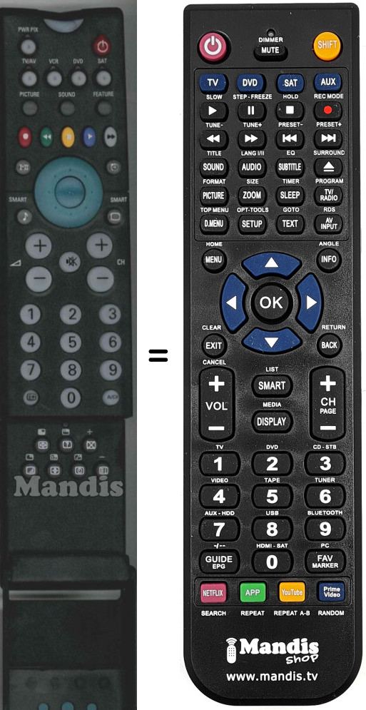 Es handelt sich jedoch nicht um eine Universalfernbedienung sondern um eine Fernbedienung die das Original ersetzt.